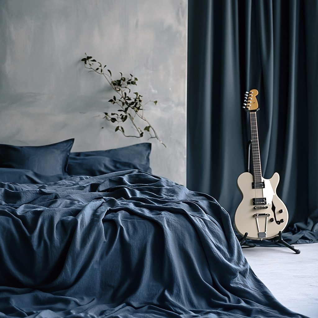 Immerse yourself in the serenity of our luxurious dark blue sheets, inspired by the timeless allure of Joni Mitchell's "Blue." Crafted for ultimate relaxation and calmness, these sumptuous sheets are made from our proprietary smart fabric—soft, durable, and breathable, ensuring a cozy and comfortable sleep. The smooth texture glides over your skin, offering a soothing sensation that effortlessly guides you into a peaceful slumber. The rich, deep blue hue adds a touch of sophistication to your bedding, making these sheets a stylish enhancement to any...
